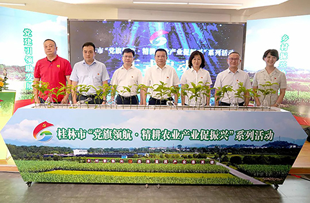 2022年7月28日,桂林市“黨旗領航·精耕農(nóng)業(yè)產(chǎn)業(yè)促振興”系列活動啟動儀式在七星區(qū)萬禾集團黨建活動基地舉行。市委常委、組織部部長趙衛(wèi)東出席活動并講話,市委組織部副部長唐德華主持活動,七星區(qū)委書記鄭平為活動致辭,七星區(qū)領導何濤、陳靖、劉慶娜,桂林銀行桂林分行行長杜昆,萬禾集團黨總支書記、總經(jīng)理崔萌佳參加活動。