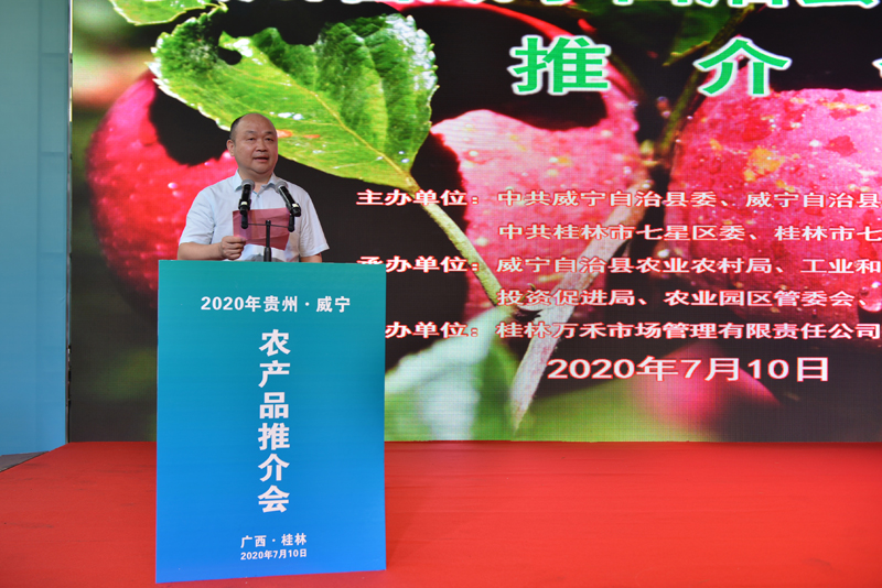 7月10日,由中共威寧自治縣委、威寧自治縣人民政府、中共桂林市七星區(qū)委、桂林市七星區(qū)人民政府主辦,威寧自治縣農(nóng)業(yè)農(nóng)村局、工業(yè)和信息化局、投資促進(jìn)局、農(nóng)業(yè)園區(qū)管委會(huì)、農(nóng)投公司承辦,桂林萬(wàn)禾市場(chǎng)管理有限責(zé)任公司協(xié)辦的2020年桂林“威寧農(nóng)產(chǎn)品推介會(huì)”,在桂林五里店果蔬批發(fā)市場(chǎng)成功舉辦。