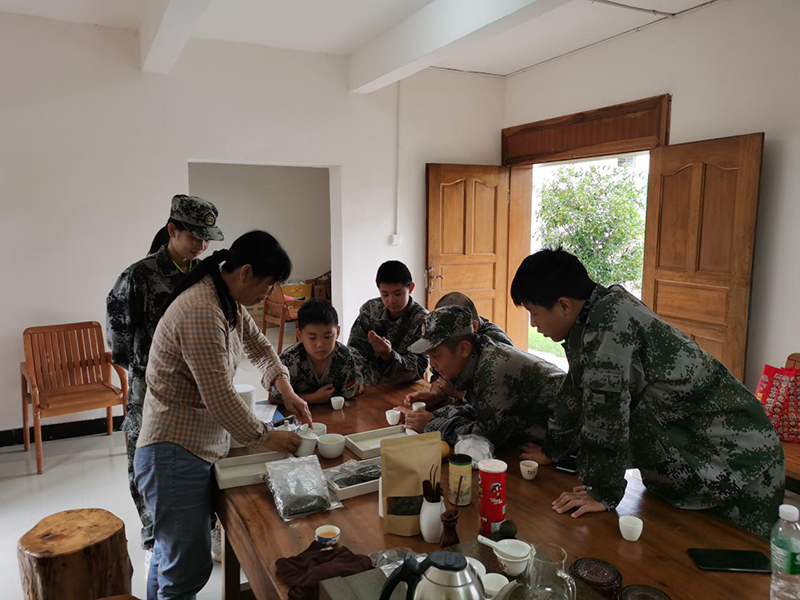 在茶課上,學(xué)員們跟隨老師學(xué)習(xí)茶葉制作、分類鑒別、泡茶禮儀等相關(guān)知識,并與制茶師傅一起參與制茶。