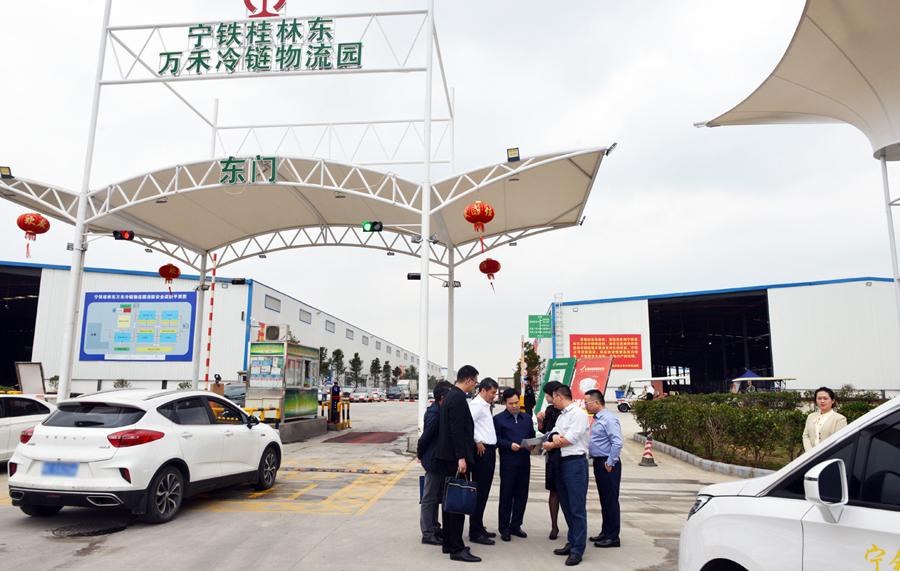 3月18日下午,南寧鐵路局副局長楊燁,廣西寧鐵物資工業(yè)有限公司黨委書記、董事長石小東,廣西寧鐵物資工業(yè)有限公司桂林分公司總經(jīng)理陸泉州,南寧鐵路局開發(fā)處處長鄧順秋等赴寧鐵桂林東萬禾冷鏈物流園,考察寧鐵桂林東萬禾冷鏈物流園三期功能配套建設(shè)相關(guān)工作,桂林萬禾農(nóng)產(chǎn)品有限公司黨總支書記、總經(jīng)理崔萌佳隨行講解。