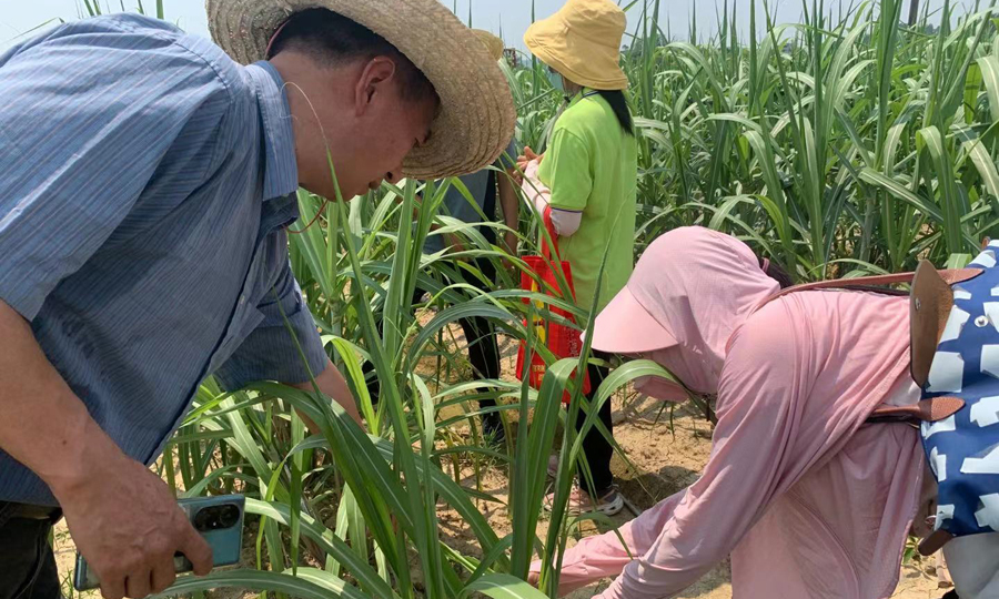 在交流過程中,專家們與公司技術(shù)人員和農(nóng)戶一同查看種植甘蔗的葉片和芽頭受到的不同程度病蟲害影響,著重強調(diào)甘蔗的病蟲害問題,指出甘蔗病蟲害不僅影響甘蔗的正常生長,更會影響成品甘蔗的品像。專家們現(xiàn)場手把手傳授了查看病蟲害的要領(lǐng)和防治病蟲害的時機和方法。