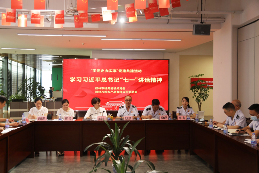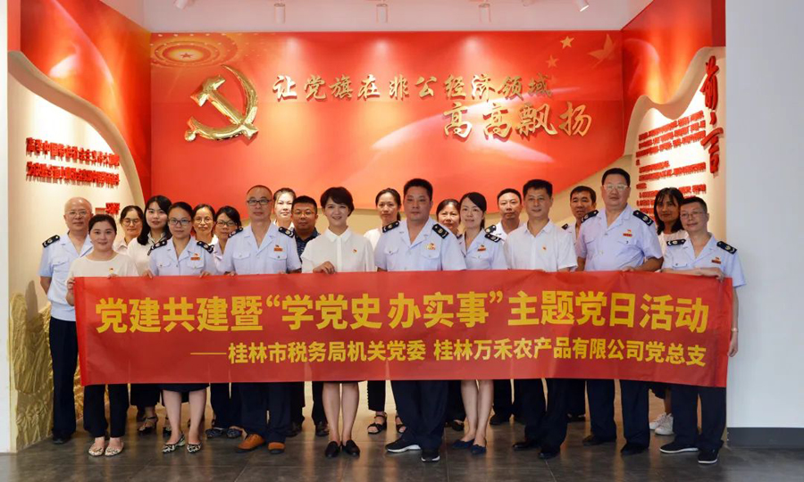 8月6日,桂林市稅務(wù)局機(jī)關(guān)黨委與桂林萬禾農(nóng)產(chǎn)品有限公司黨總支共同開展了“稅企共建+共促發(fā)展”黨建共建活動,此次活動的主題是“學(xué)黨史 辦實(shí)事”,雙方20多名黨員參加了活動。