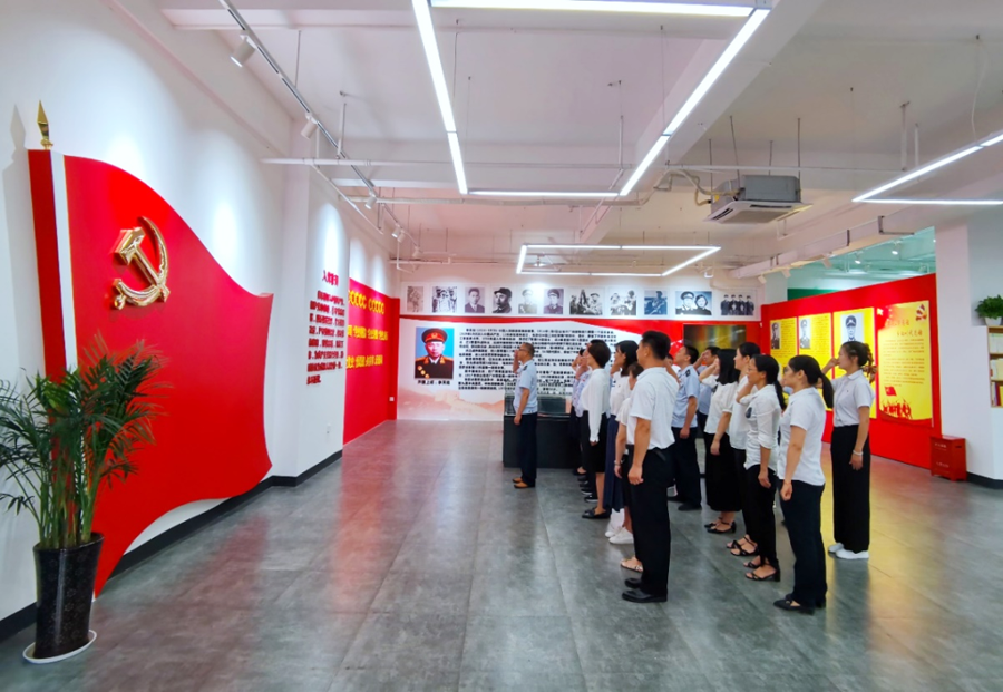 參觀黨員活動基地結(jié)束后,雙方黨員面對黨旗,共同舉行了重溫入黨誓詞儀式。