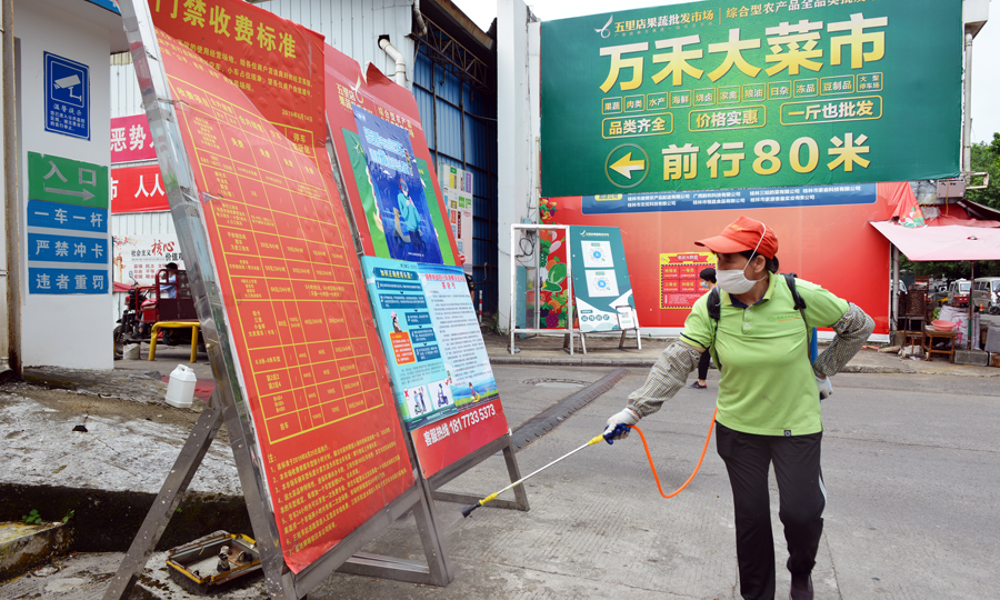 批發(fā)市場相較于其它場所人多貨雜,病毒隱匿風險高,是防疫重點場所。萬禾公司第一時間啟動應急預案,下發(fā)《關(guān)于做好公司疫情防控有關(guān)事項的通知》,壓緊壓實公司責任、部門責任和個人責任。在五里店果蔬批發(fā)市場、寧鐵桂林東萬禾冷鏈物流園內(nèi)部加強管控,實施24小時應急值守。加強宣傳教育,提高從業(yè)人員的防護意識,把疫情防控責任落到實處。