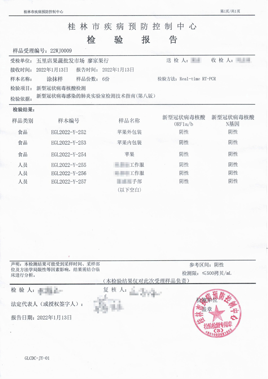 為保證春節(jié)期間食品安全質(zhì)量,嚴防疫情從農(nóng)產(chǎn)品輸入。近期,萬禾公司邀請桂林疾控中心的專業(yè)檢測人員對桂林五里店果蔬批發(fā)市場內(nèi)的進口水果以及經(jīng)營環(huán)境開展抽樣核酸檢測工作。