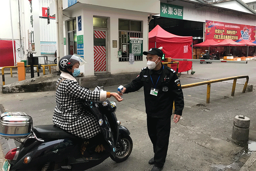 嚴格落實測體溫及掃碼核對實名制出入制度,做好戴口罩、市場及辦公場所全區(qū)域消殺等各項疫情防控工作。要求所有經(jīng)營戶做好倉位消毒,保持倉位潔凈、衛(wèi)生。