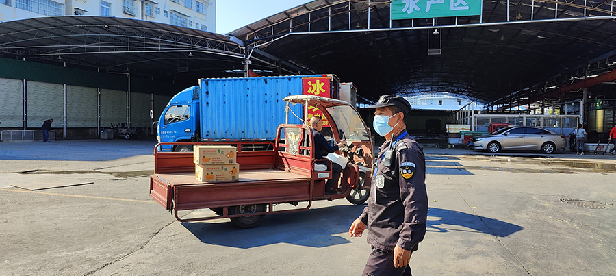 對各主要經(jīng)營場所進(jìn)出人員嚴(yán)格執(zhí)行測體溫、核驗(yàn)健康碼、佩戴口罩,并設(shè)置口罩售賣點(diǎn);進(jìn)入市場的貨運(yùn)車輛,應(yīng)提前向市場報(bào)備,憑司乘人員48小時(shí)核酸檢測證明、行程碼、入場碼,測量體溫正常經(jīng)過消毒后進(jìn)入市場。進(jìn)入市場后將車輛停放在指定卸貨區(qū)域,司乘人員不得下車,不得參加卸貨、銷售,全程不得與其他人員接觸,全程封閉式卸貨,筑牢抗擊疫情第一防線;各經(jīng)營場所內(nèi)部加強(qiáng)管控,安排人員不間斷對市場進(jìn)行巡查,實(shí)施24小時(shí)值守制度;建立監(jiān)管機(jī)制,加強(qiáng)在崗人員教育培訓(xùn),嚴(yán)格遵循國內(nèi)疫區(qū)人員核驗(yàn)處理辦法;定時(shí)對人多貨雜的交易區(qū)域和病毒隱匿高風(fēng)險(xiǎn)區(qū)域實(shí)施衛(wèi)生清潔、病毒消殺,全力保障經(jīng)營戶、群眾的身體健康。