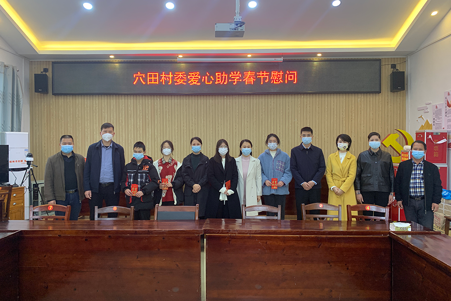 1月13日,在桂林市婦女聯(lián)合會的指導下,桂林市婦女聯(lián)合會黨組書記、主席陳薇薇,桂林市婦女聯(lián)合會副主席林玉潔,廣西桂林聚慧投資集團有限公司黨委專職副書記、工會主席蔣紅梅,萬禾集團黨總支副書記夏四初一行來到臨桂區(qū)中庸鎮(zhèn)穴田村,以走訪、座談等多種形式慰問自2022年6月以來建立結(jié)對幫扶、持續(xù)愛心助學的9戶困境學生家庭,為他們送去黨和政府、婦聯(lián)組織以及社會愛心企業(yè)的溫暖與關懷。