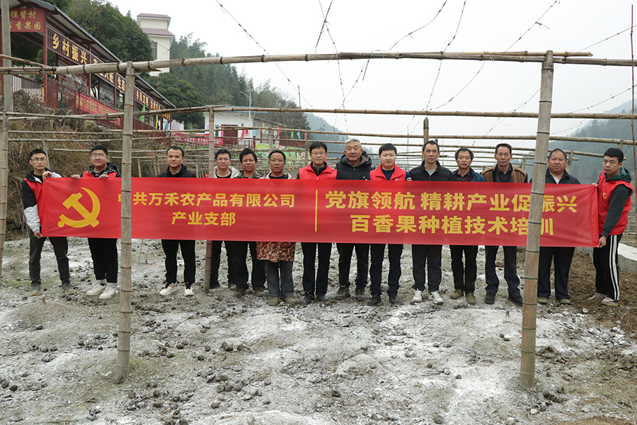 產業(yè)部支部通過黨組織共建模式、結對幫扶猴背村百香果產業(yè),實現(xiàn)一村一品優(yōu)勢品牌建設。