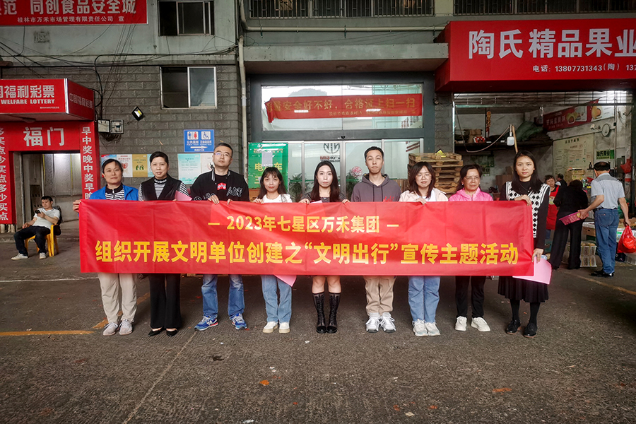 活動中,萬禾集團黨總支組織黨員在五里店果蔬批發(fā)市場,將精心準備好的開展創(chuàng)建文明單位“文明出行”宣傳順口溜宣傳單發(fā)放到每一家經營戶和市民消費者手中,并對每一條順口溜進行詳細講解。