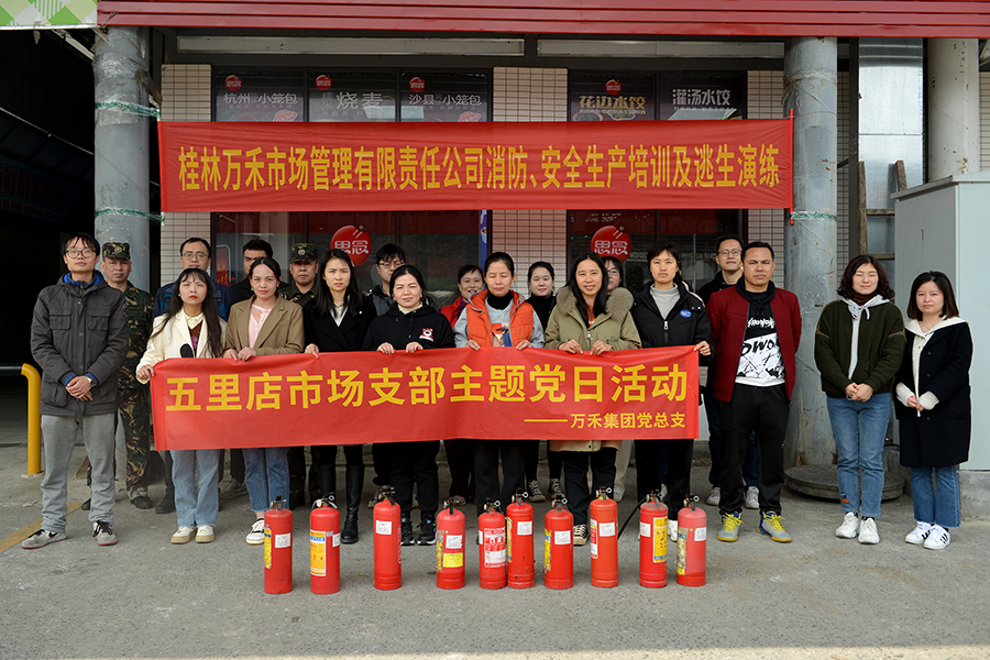 為增強黨員干部及市場經(jīng)營戶消防安全意識,有效掌握防火、滅火應(yīng)急處置能力,4月25日,萬禾集團五里店市場支部組織黨員干部及市場經(jīng)營戶在五里店果蔬批發(fā)市場開展“增強消防意識,筑牢安全防線”主題黨日活動,桂林市七星消防隊?wèi)?yīng)邀到場進行消防安全培訓(xùn)。