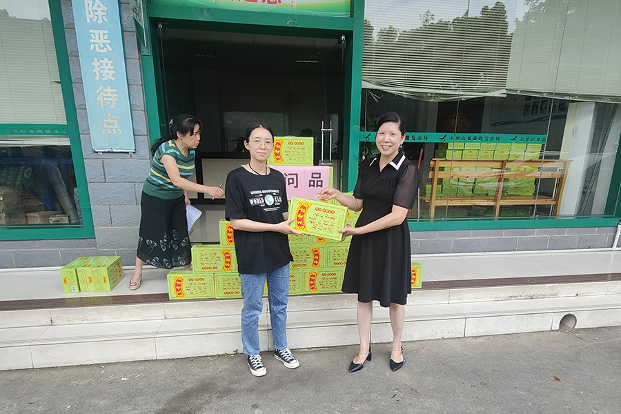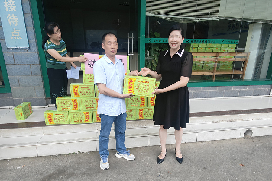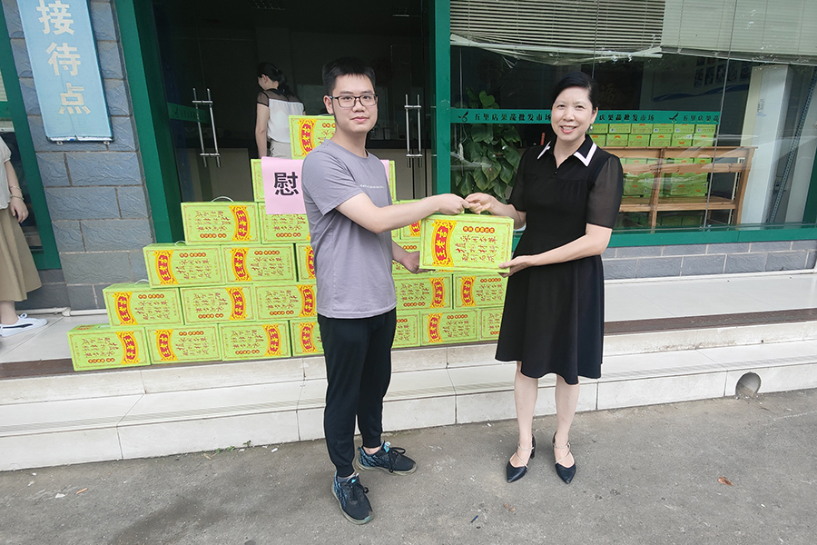 ▲夏四初為堅守一線的員工贈送防暑飲品