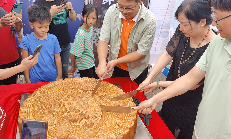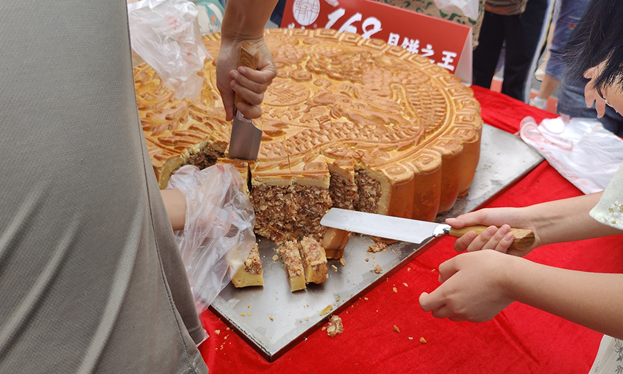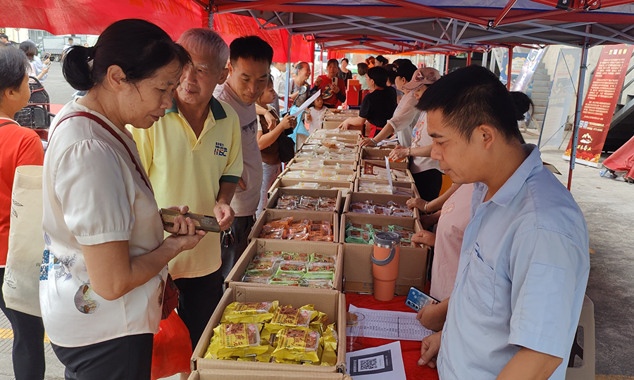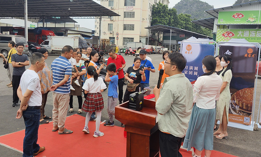 活動現(xiàn)場,萬禾集團(tuán)五里店市場支部聯(lián)合黃家月等月餅品牌商組織開展“168斤月餅王”嘗鮮為主題的系列活動,支部黨員干部、市場經(jīng)營戶代表以及市場各職能部門員工參加活動,與前來桂林五里店果蔬批發(fā)市場購物的市民同慶中秋國慶佳節(jié)來臨,共話團(tuán)圓美好。