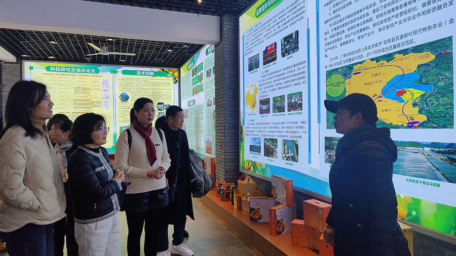 萬禾集團黨員干部一行在致富帶頭人、全國農(nóng)業(yè)勞動模范、蕉芭林村黨總支書記、黨的十九大代表賴玉梅帶領下,先后參觀了陽朔縣農(nóng)業(yè)產(chǎn)業(yè)扶貧培訓基地和白沙鎮(zhèn)黨代表工作室,賴玉梅詳細講解了培訓基地的基本情況、金桔標準化種植和深厚的歷史文化底蘊以及自己在創(chuàng)業(yè)過程中的心路歷程,讓黨員干部們深切感受到賴玉梅身為一名山村共產(chǎn)黨員堅持以身作則,將自己的致富經(jīng)驗毫無保留地傳授給村民,帶領村民走向特色金桔產(chǎn)業(yè)的致富之路。