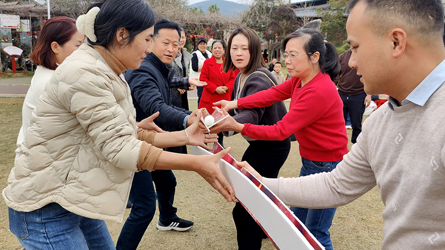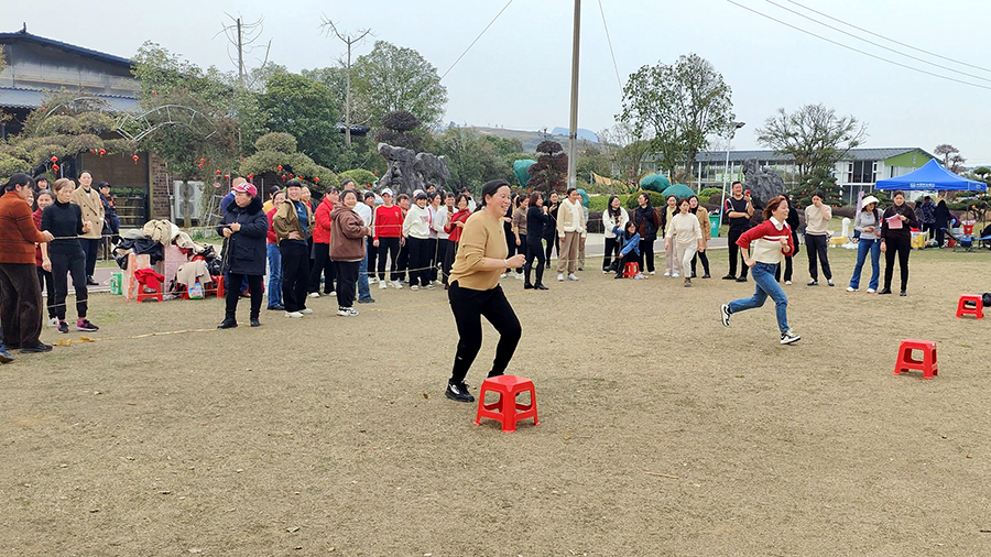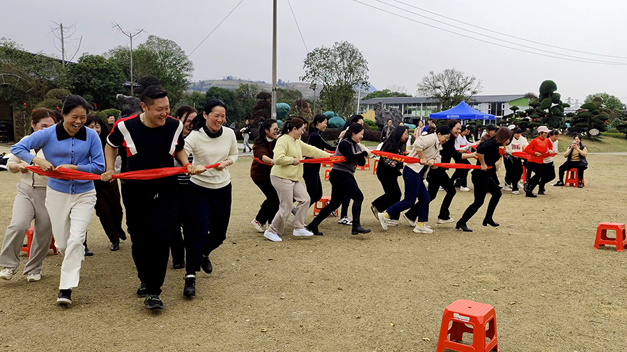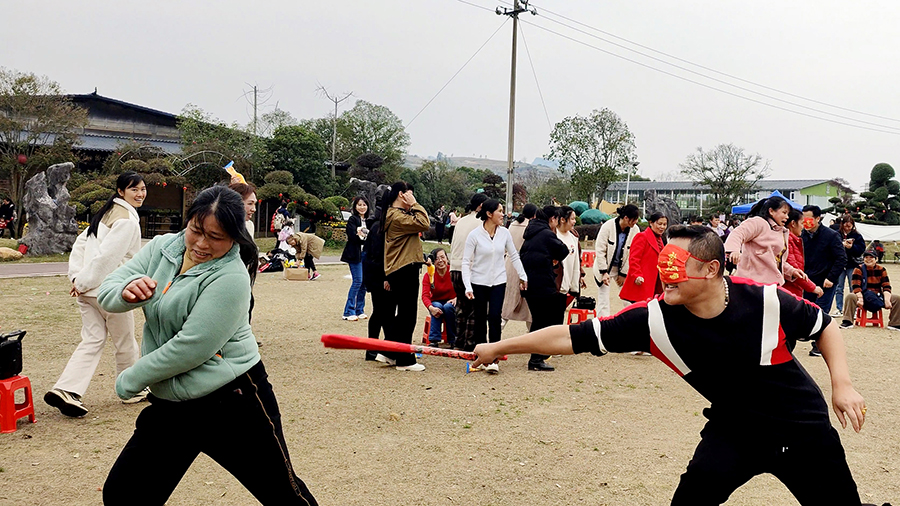 ▲“蒙眼尖叫雞、重走長(zhǎng)征路”趣味活動(dòng)