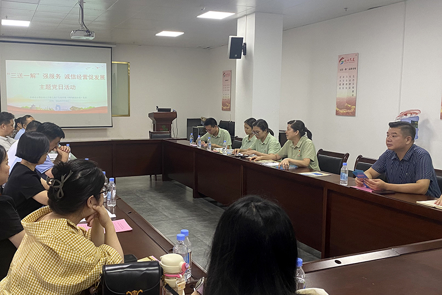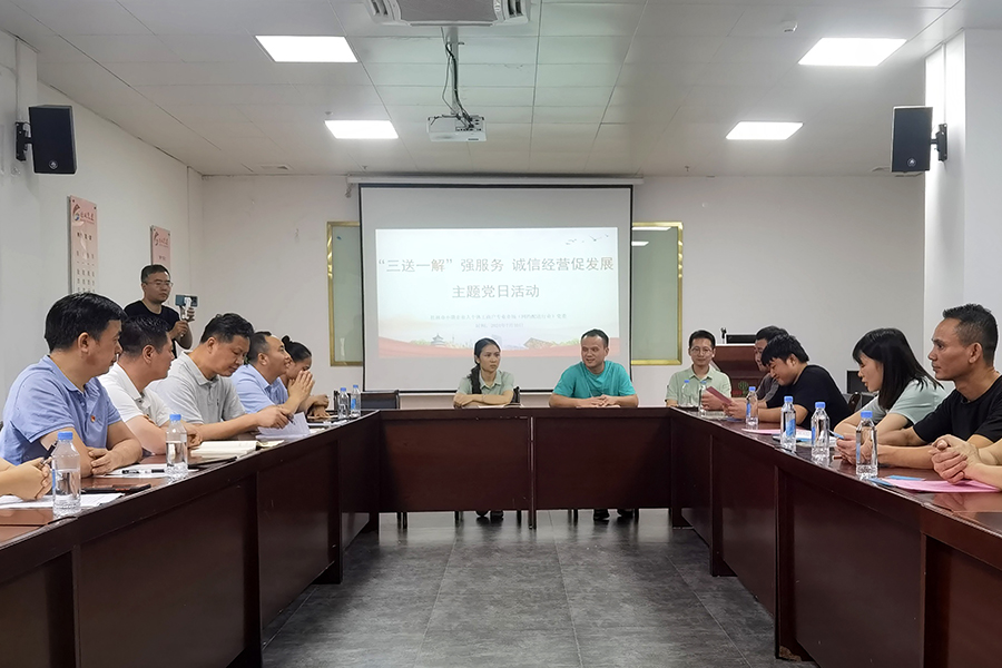 為深入貫徹落實習(xí)近平新時代中國特色社會主義思想和黨的二十大、二十屆三中全會精神,充分發(fā)揮基層黨組織戰(zhàn)斗堡壘作用和共產(chǎn)黨員先鋒模范作用,推動“小個?!苯?jīng)營主體持續(xù)健康發(fā)展,7月30日下午,桂林市“小個?!保ňW(wǎng)約配送行業(yè))黨委與廣西萬禾農(nóng)業(yè)開發(fā)集團有限公司聯(lián)合開展“三送一解”強服務(wù) 誠信經(jīng)營助發(fā)展”主題活動,桂林市“小個?!保ňW(wǎng)約配送行業(yè))黨委副書記、小個專黨建工作科科長馬洪濤主持活動。